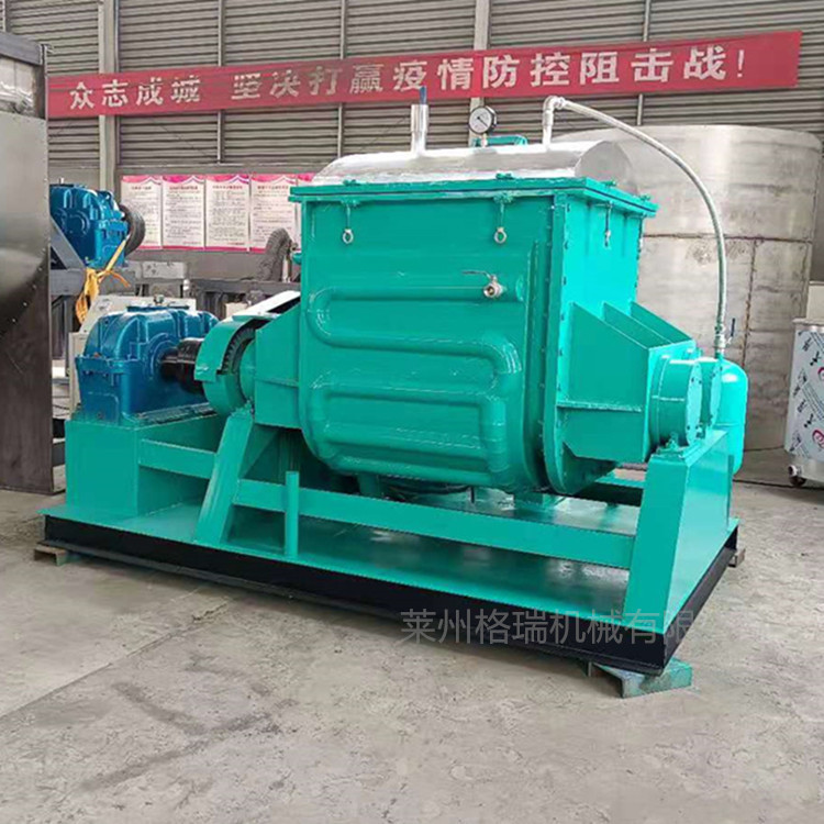 電加熱捏合機分普通型、壓力型、真空型三大類,加熱方式為電加熱,出料方式有液壓翻缸傾倒式、手動傾倒式、球閥出料式及螺桿擠出式等,與物料接觸部件均采用不銹鋼或碳鋼制成,能確保制品的純度和質量。該機采用“Z”型雙槳攪拌,能使物料迅速反應,均勻混合。