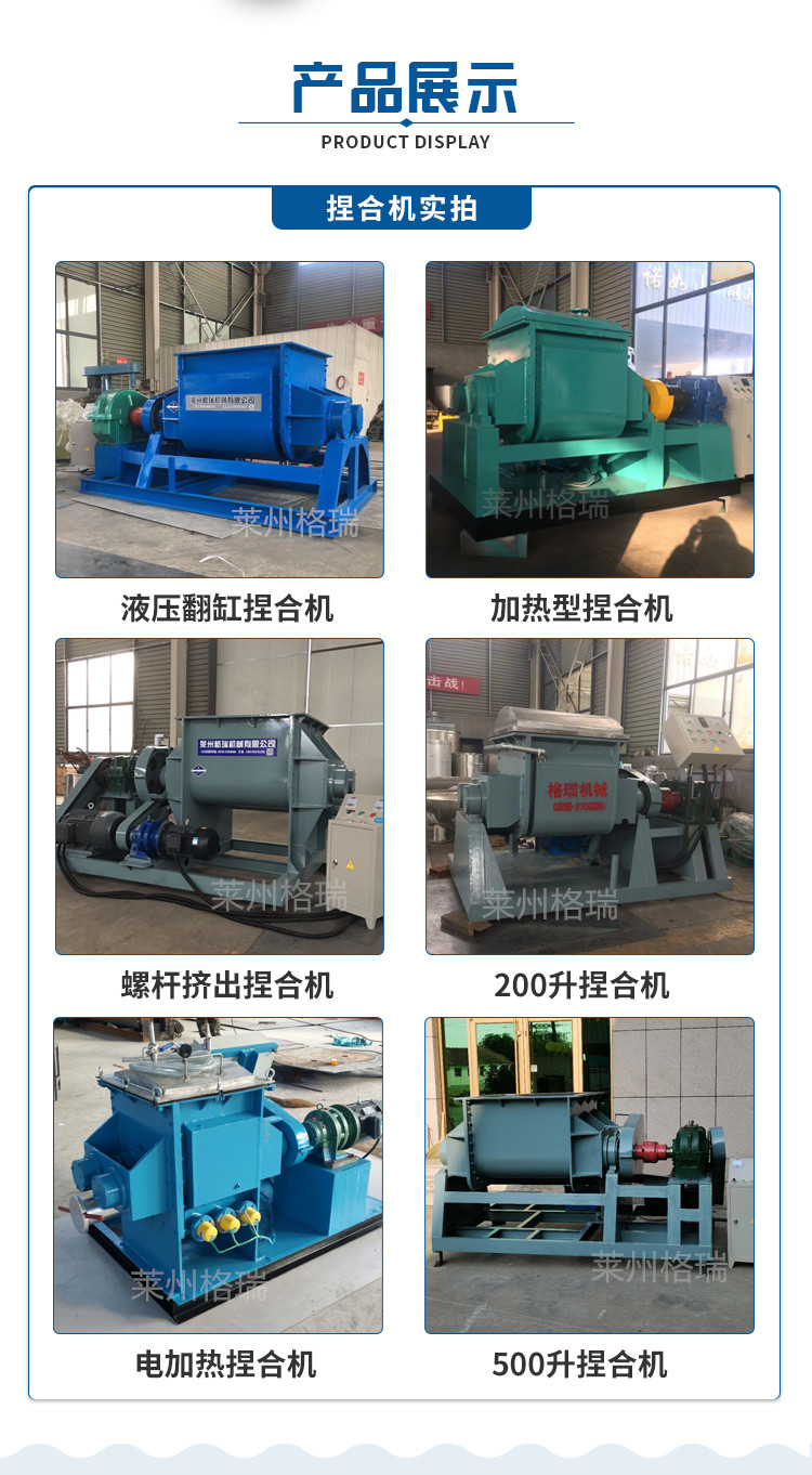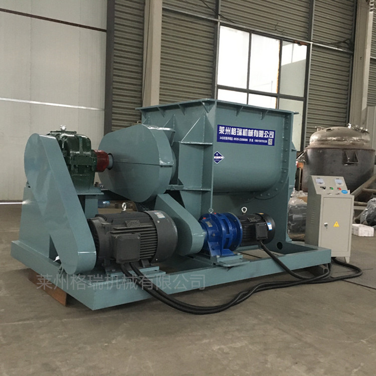 螺桿擠出捏合機出料方式為下出料,螺桿擠出式。本機主要結構是由混捏部分、機座部分、液壓系統、傳動系統和電控系統等五大部分組成?;炷蟛糠质怯筛左w、漿軸、墻板、缸蓋等組成。液壓系統由一臺液壓站來操縱大油缸,來完成啟閉功能,液壓系統由一臺液壓站來操縱油缸,來完成啟閉大蓋、閉合翻板等功能;電控系統有手動、自動電控系統,由用戶任意選擇和要求,操作方便、可靠。傳動系統由電機、減速機和齒輪組成、根據捏合機混捏鍋的型號配套電機。在傳動過程中,可由電機同步轉速,經彈性聯軸器至減速機后,由輸出裝置傳動快漿,使其達到規定的轉速,也可由變頻器進行調速。